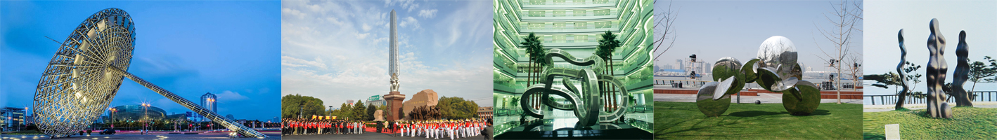 榮獲新中國60年評選城市雕塑建設成就獎現場搬運中現場吊裝就位領導現場視察合影上海市副市長周禹鵬(左)在《東方之光》制作現場與陳神聰親切握手,著名藝術大師陳逸飛(中),逸飛公司總設計師朱煌(右1)一起見證了視察現場法國建筑大師,世紀大道總設計師夏邦杰先生在《東方之光》揭幕儀式上與陳神聰親切握手